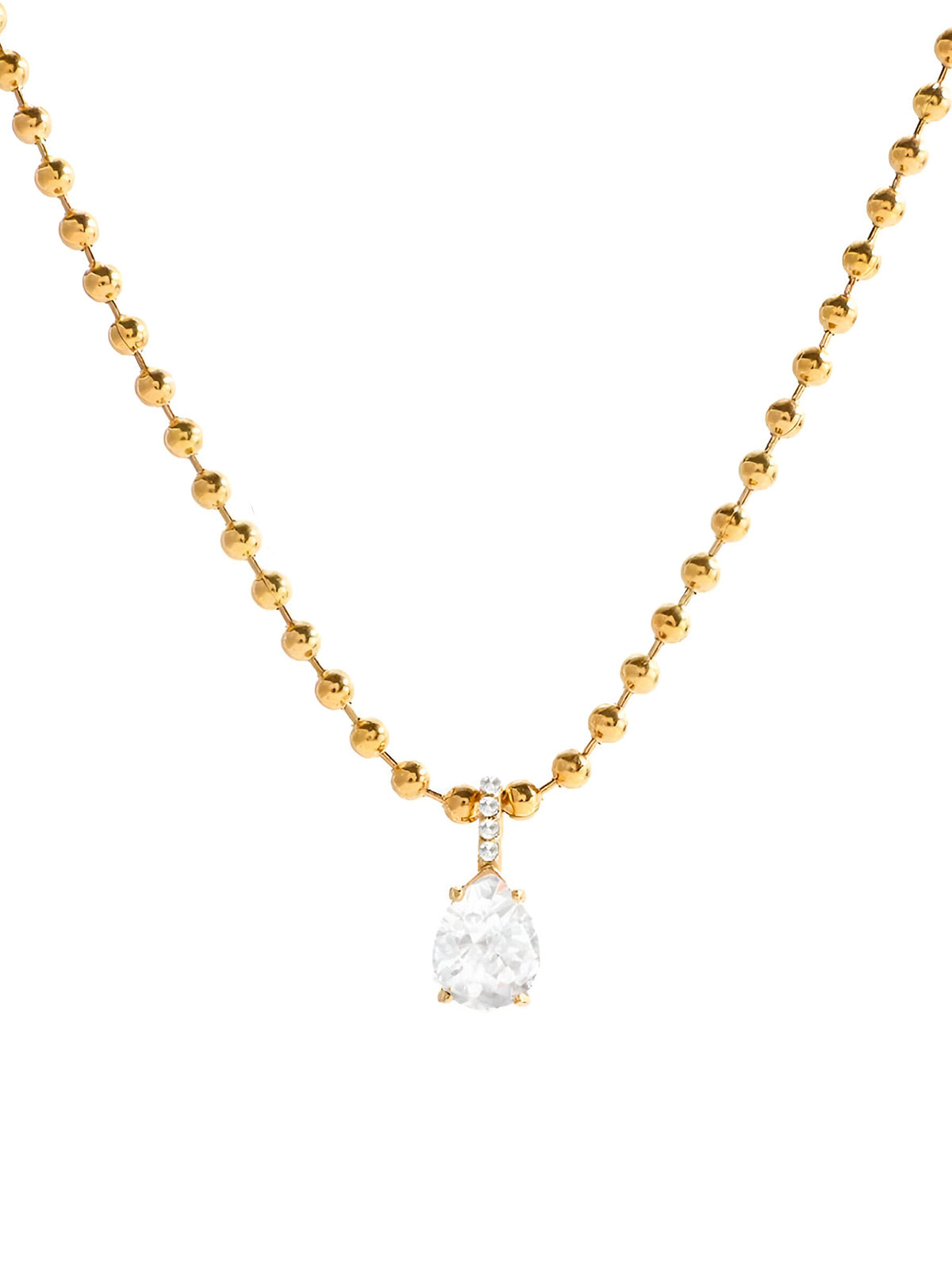 This elegant water droplet pendant necklace features a sparkling white zircon stone set in 18K gold-plated stainless steel. Durable and tarnish-resistant, it's designed for everyday wear while maintaining a refined, timeless look that works for any occasion.