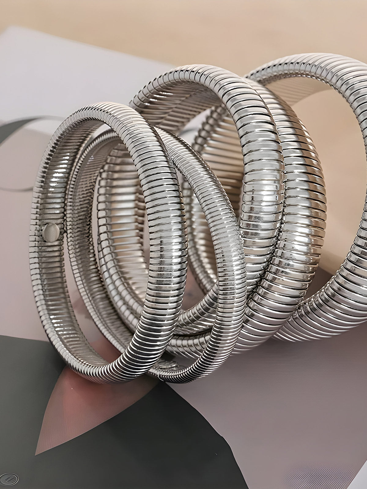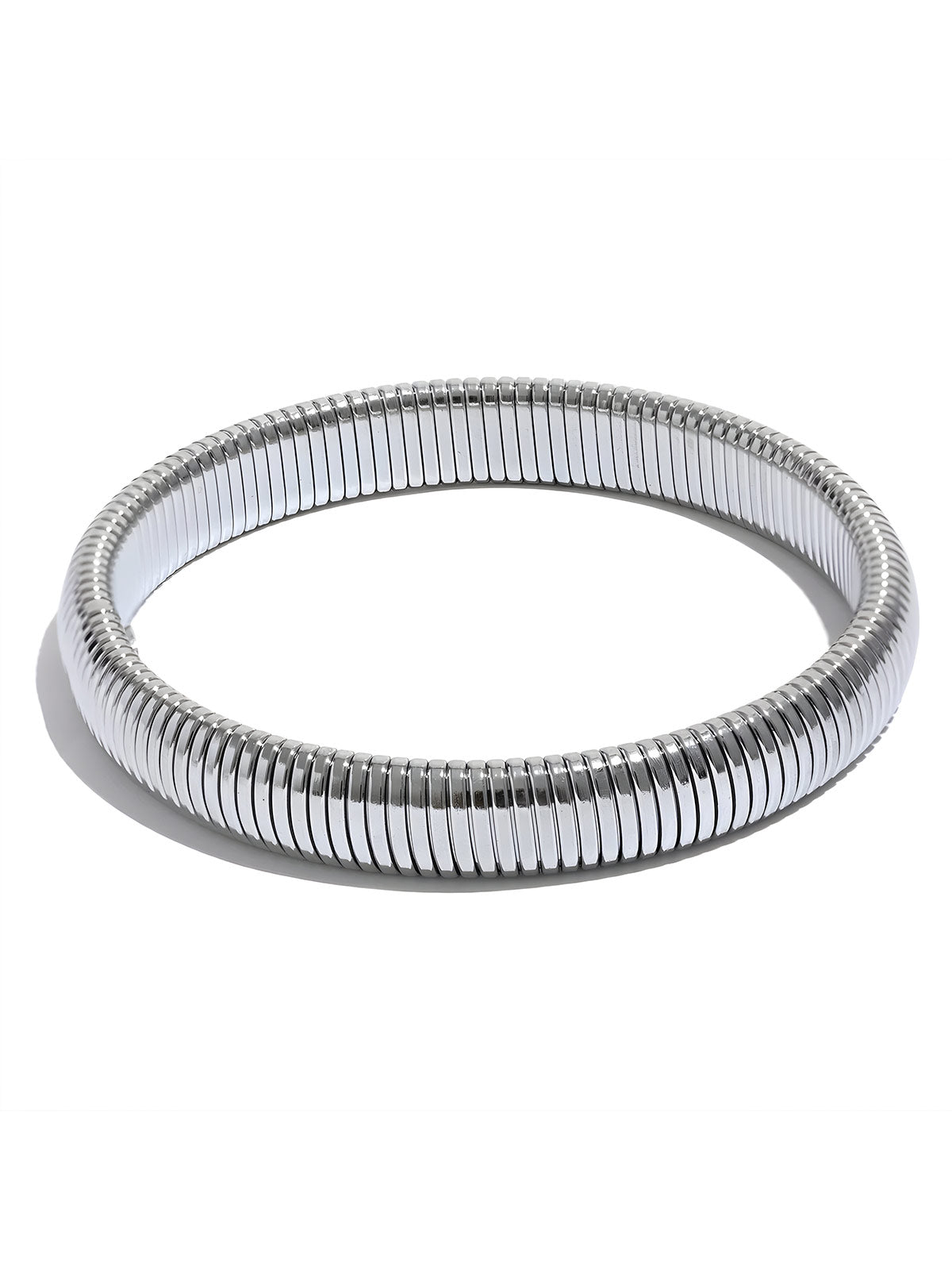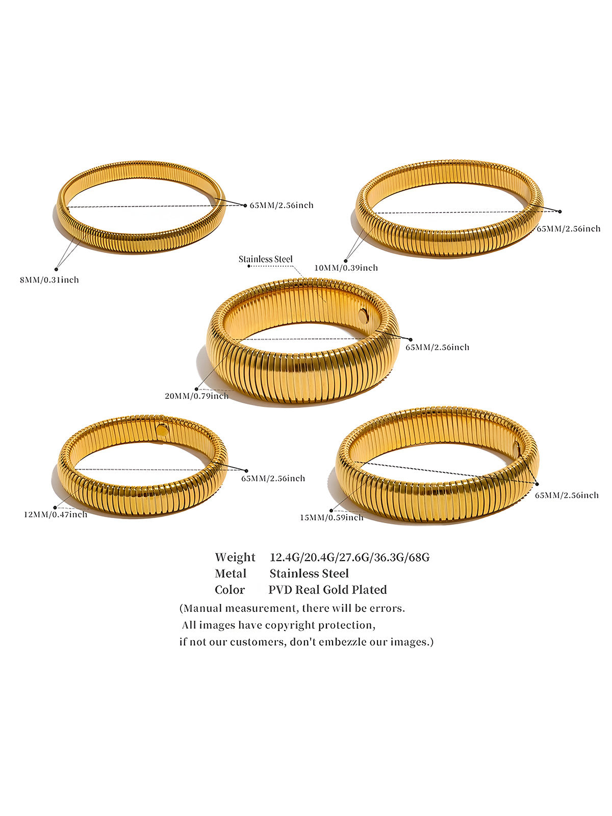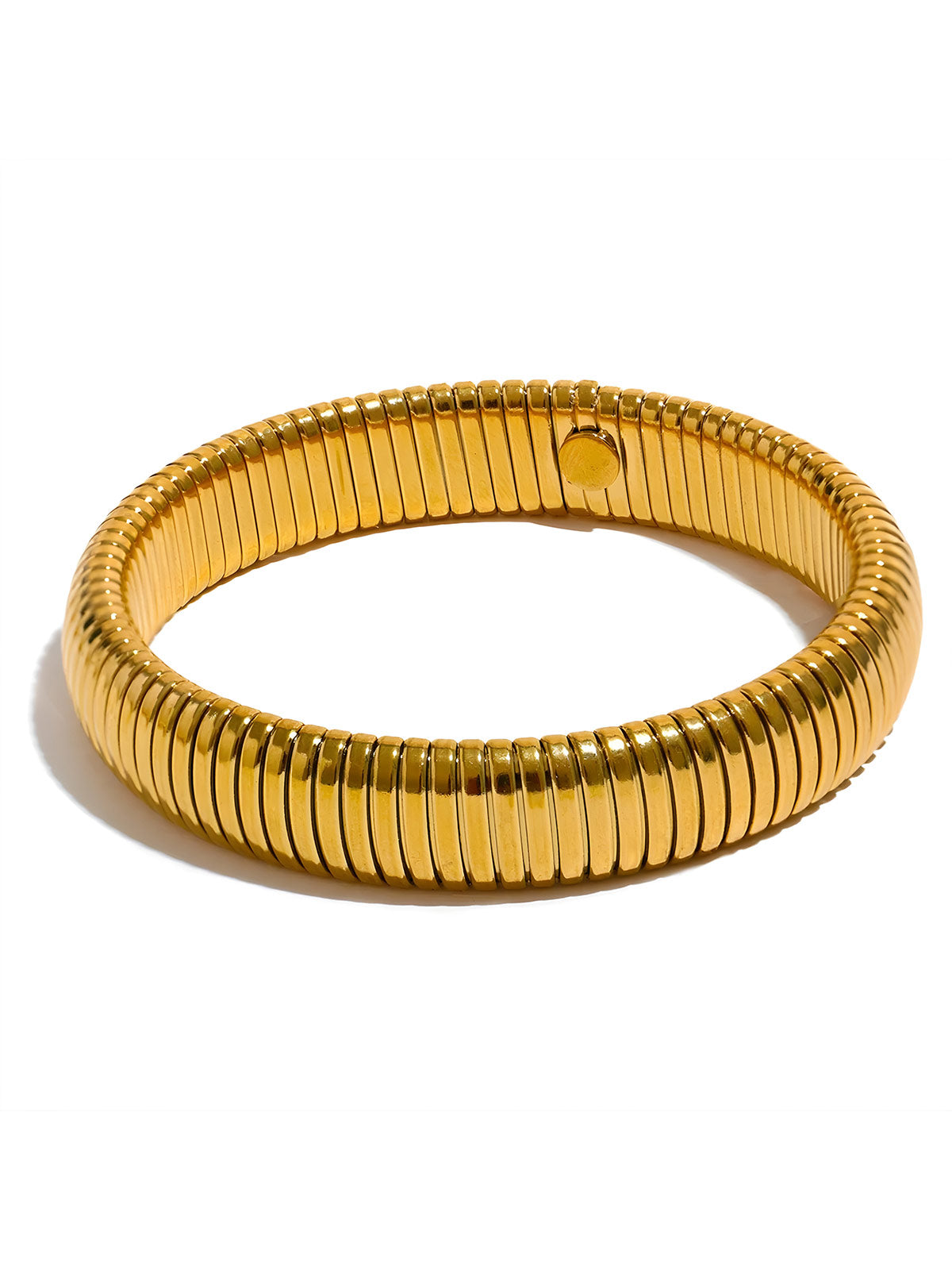 This Yhpup bracelet combines durability and style with its waterproof stainless steel construction and thick elastic design. Plated in 18K gold, it offers a luxurious finish that resists tarnishing. Suitable for both men and women, this unisex bangle adds a modern, fashionable touch to any outfit while ensuring long-lasting wear.