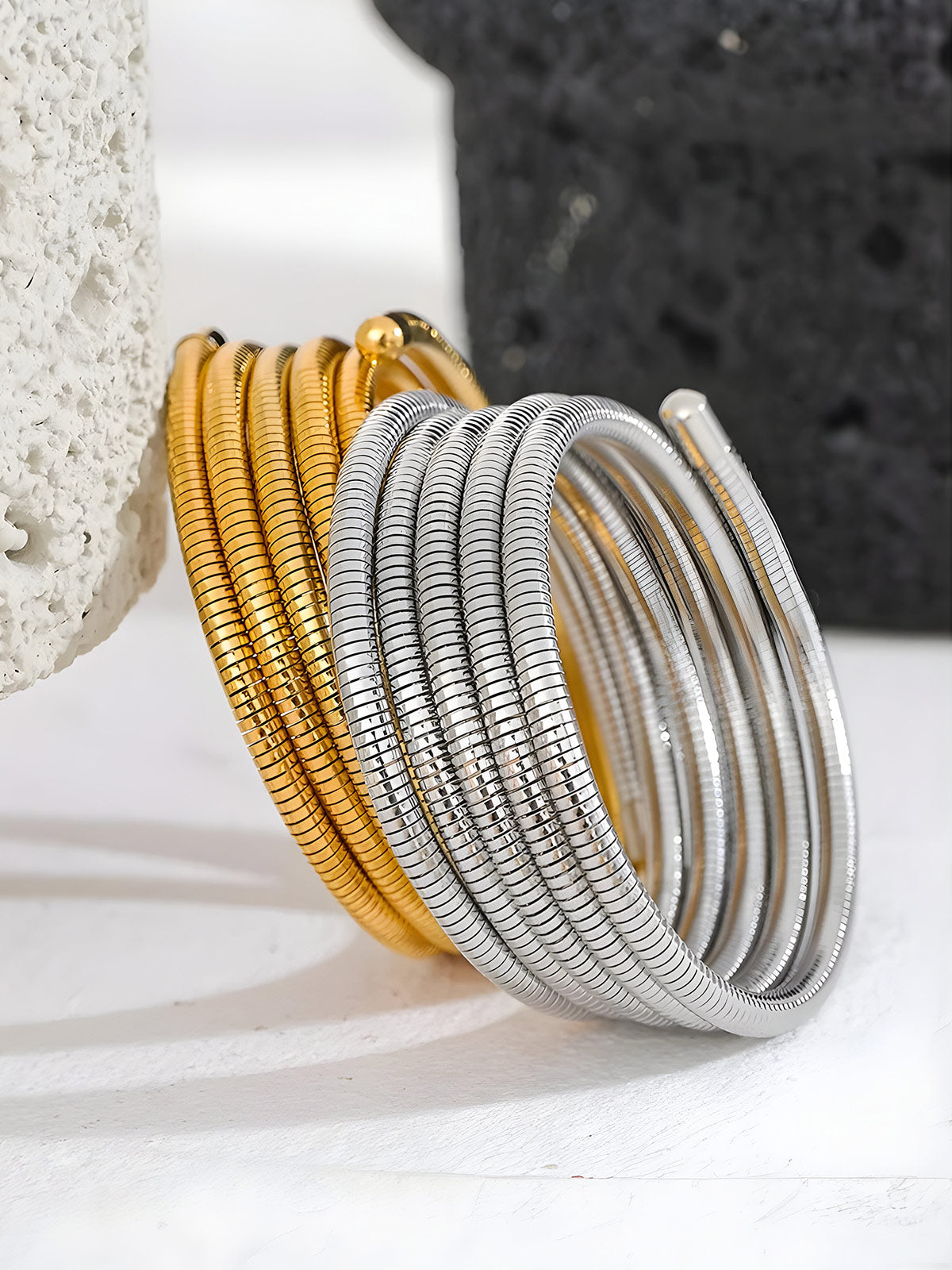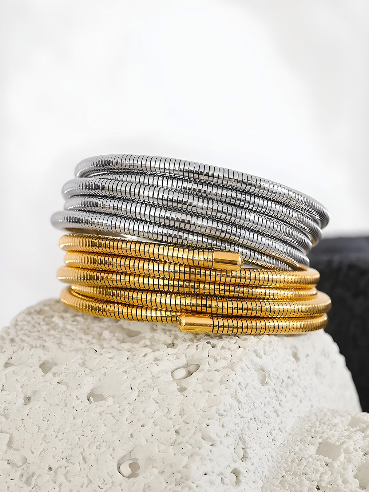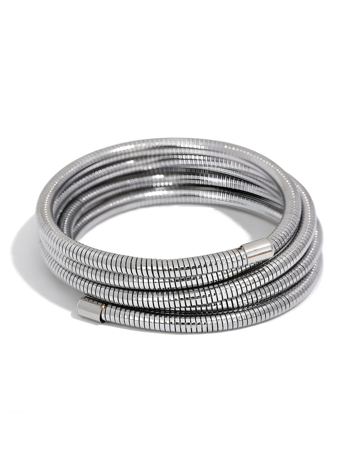 This Yhpup stainless steel bracelet features a stackable, multi-layer wrap design with a flexible elastic band, ensuring a comfortable fit for both men and women. Crafted from durable, waterproof metal, it combines fashion with practicality, making it an ideal accessory for everyday wear. Its sleek, unisex style complements various outfits, offering a sophisticated yet versatile addition to your jewelry collection.