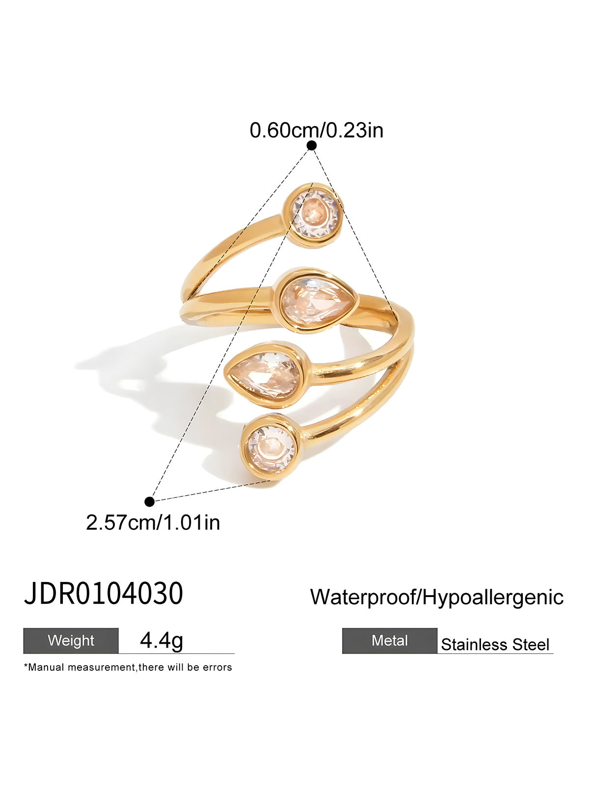 This elegant water drop ring features a minimalist design crafted from stainless steel with an 18K gold color plating. Adorned with a sparkling white zircon, it offers a refined touch suitable for parties or special occasions. Durable and stylish, this piece makes a sophisticated gift for women who appreciate subtle yet striking jewelry.