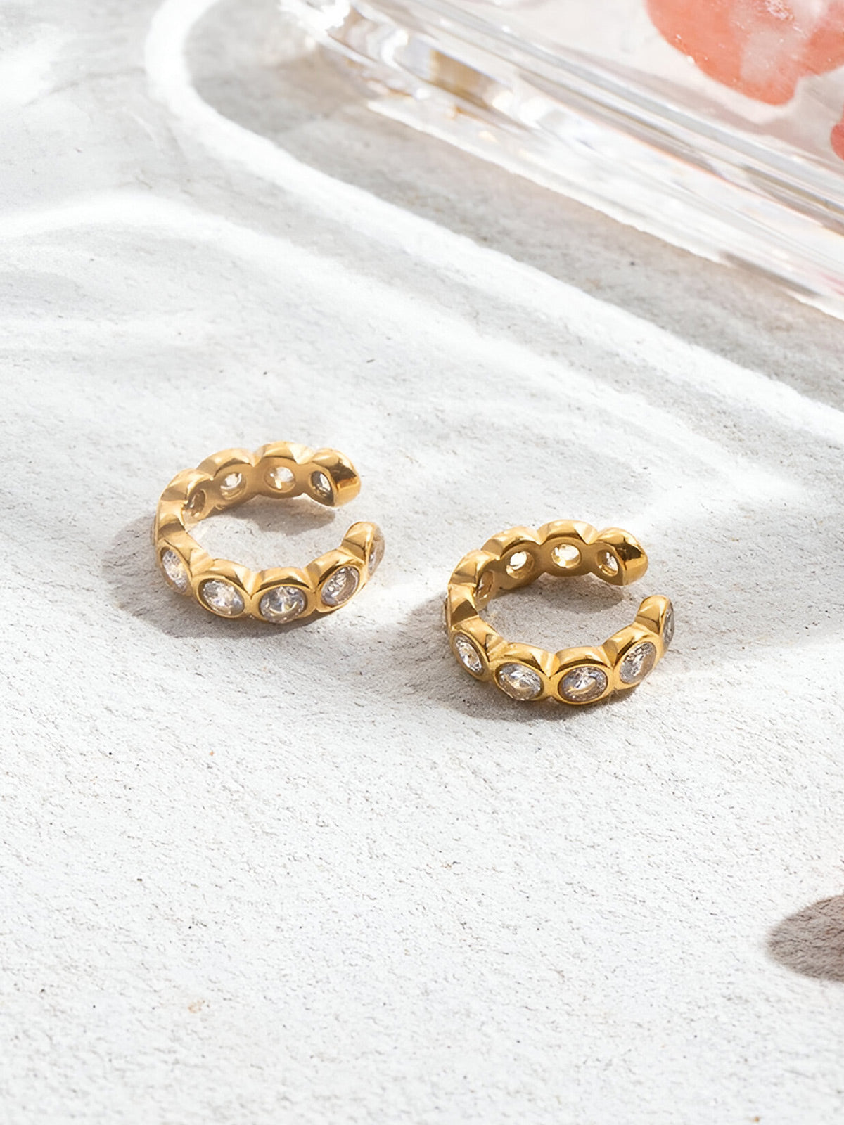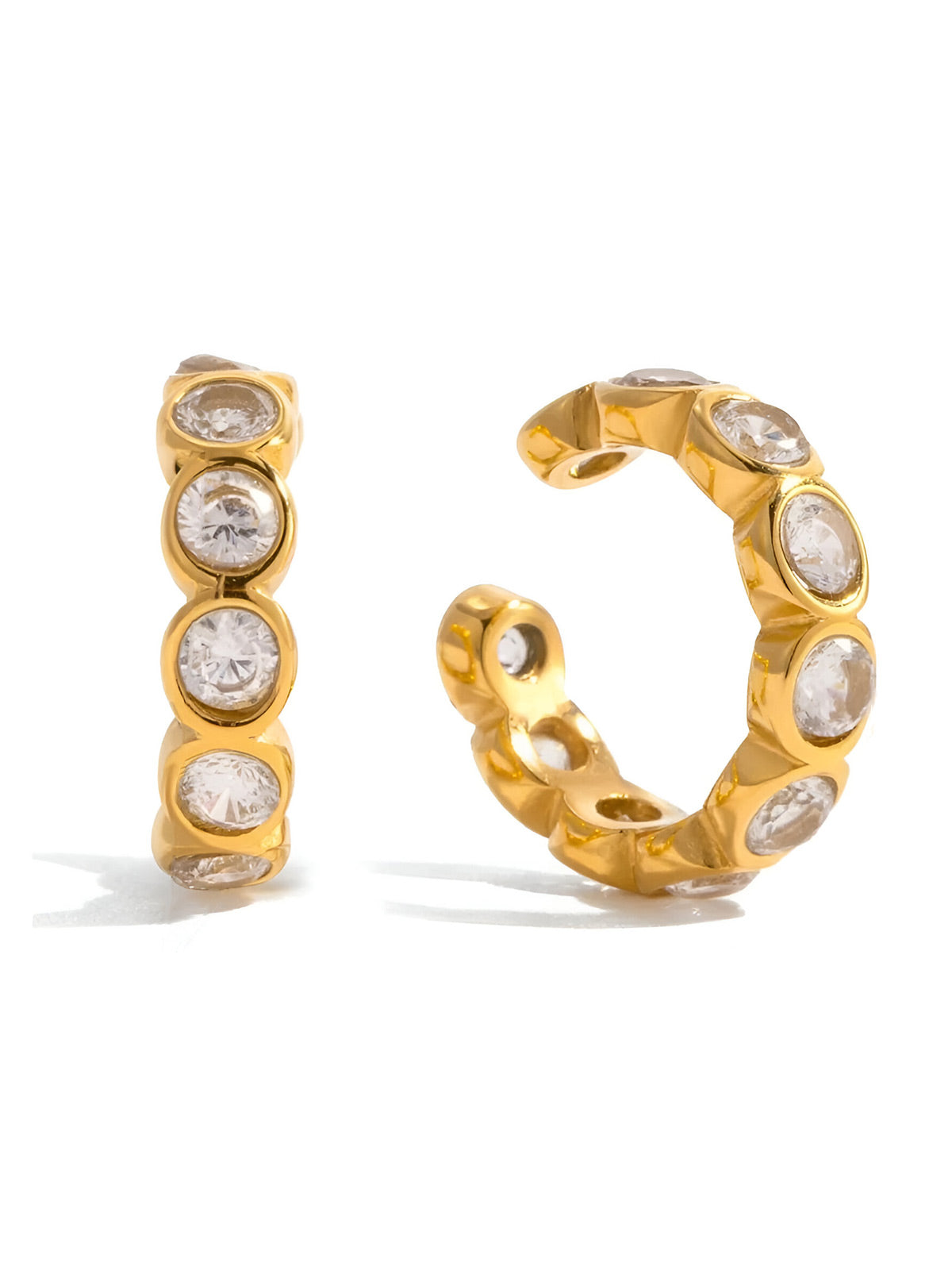 The Zora Classic Minimalist ear clip combines hypoallergenic stainless steel with 18K gold plating and white zircon accents. Designed for sensitive skin and everyday comfort, these versatile clips transition effortlessly from casual to formal settings. An elegant gift for those who value refined simplicity.