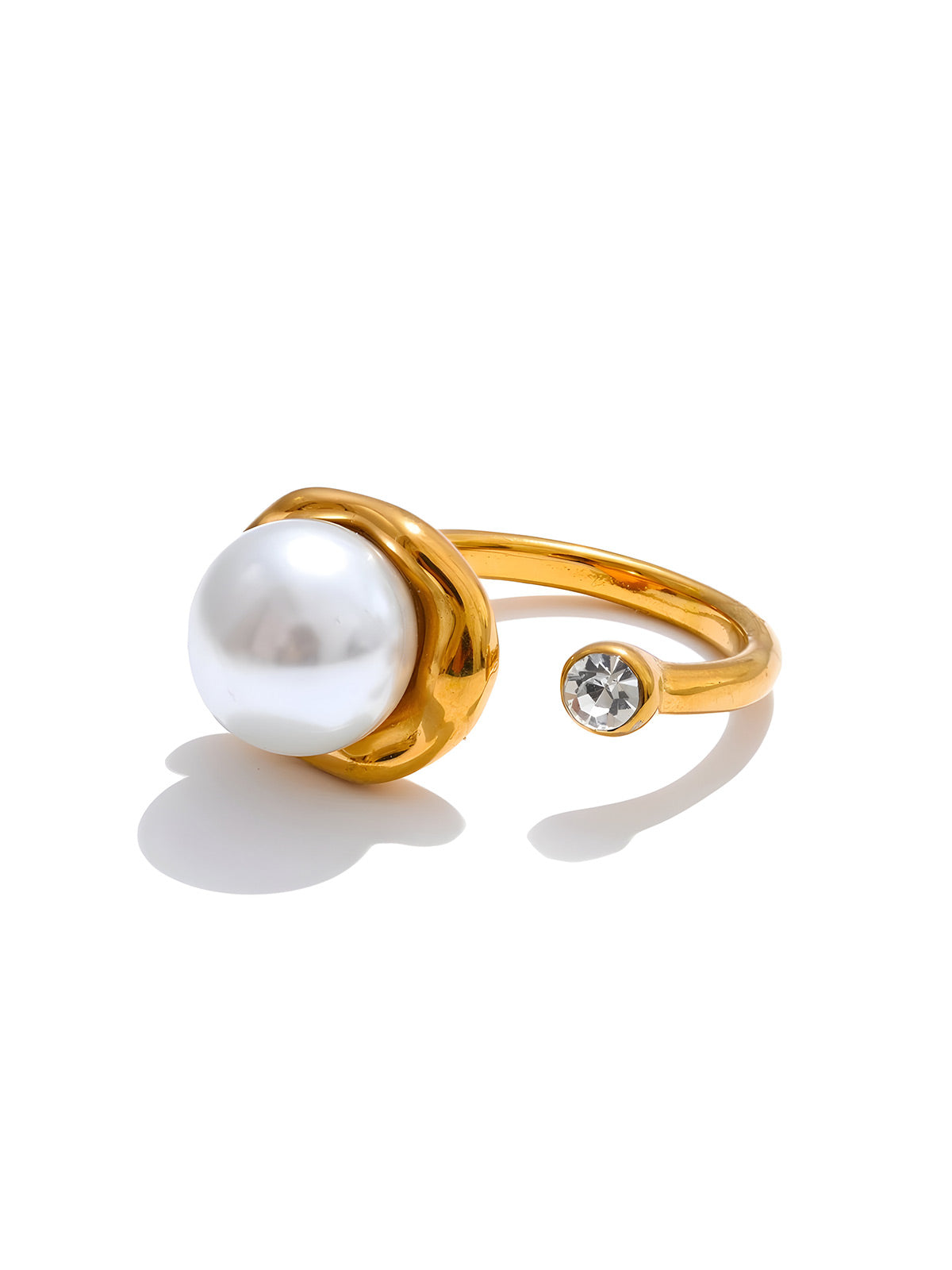 This elegant open fashion ring features smooth simulated pearls set on a durable stainless steel band with a golden finish. Designed for both style and longevity, it offers a sophisticated accessory that complements any outfit while resisting tarnish and wear. Ideal for those seeking refined jewelry with lasting quality.