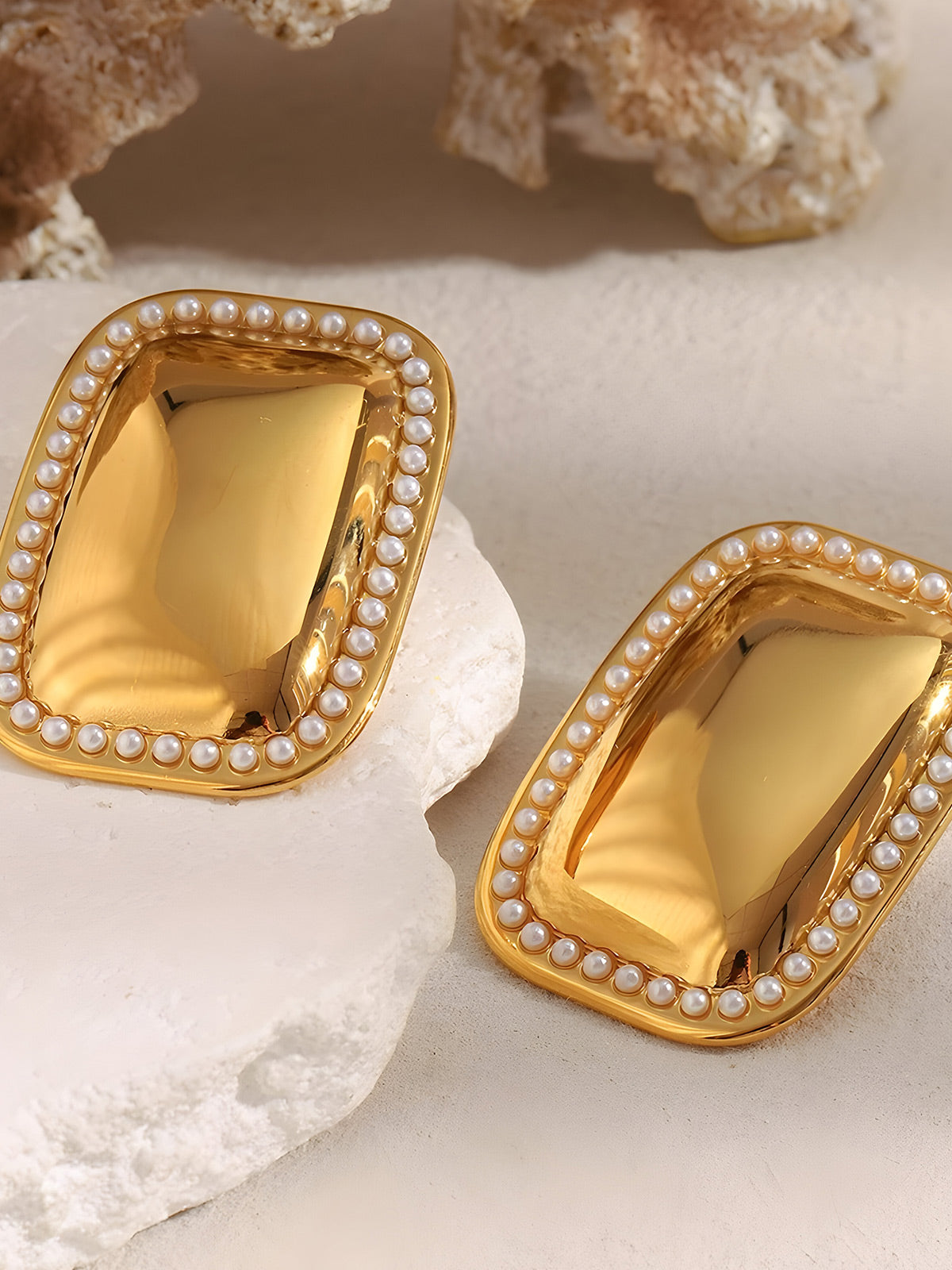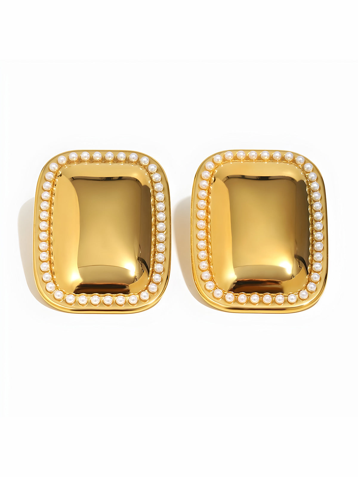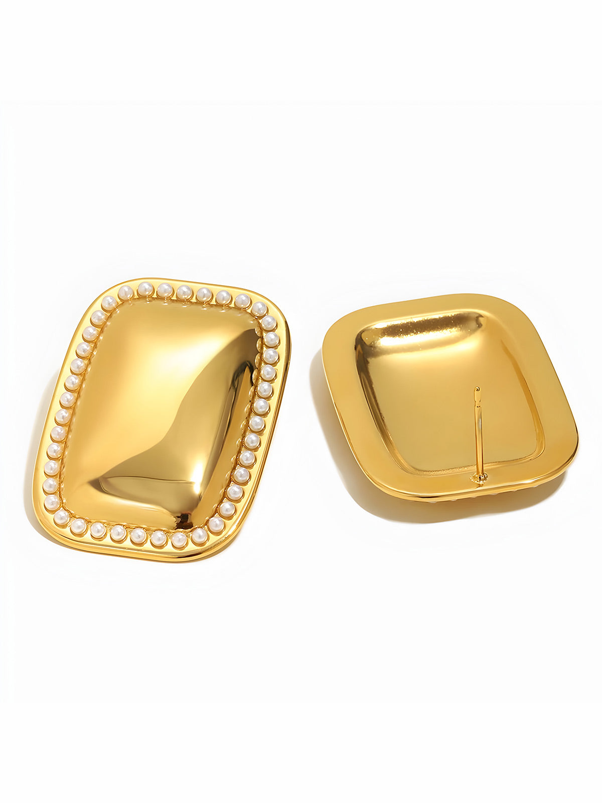 Elevate your style with the E.B.belle New Vintage Style Rectangle Stud Earrings. Crafted from stainless steel and finished with 18k gold plating, these earrings feature imitation pearls that bring a timeless, vintage-inspired charm. Designed for durability and elegance, they offer a sophisticated accessory that complements both casual and formal looks with lasting shine and comfort.