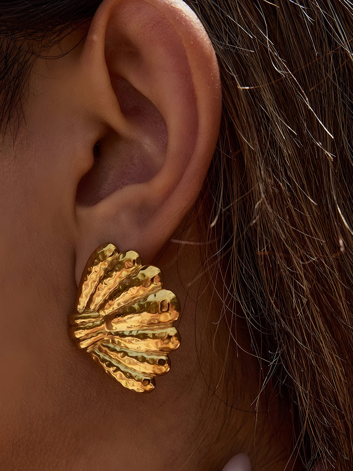 Elevate your everyday style with Zora Women's Retro Summer Hammered Shell Earrings. Crafted from 18K gold-plated stainless steel, these earrings combine durability with a vintage-inspired hammered shell design. Perfect for daily wear or vacation, they add a sophisticated yet relaxed touch to any outfit, ensuring lasting shine and comfort throughout your day.