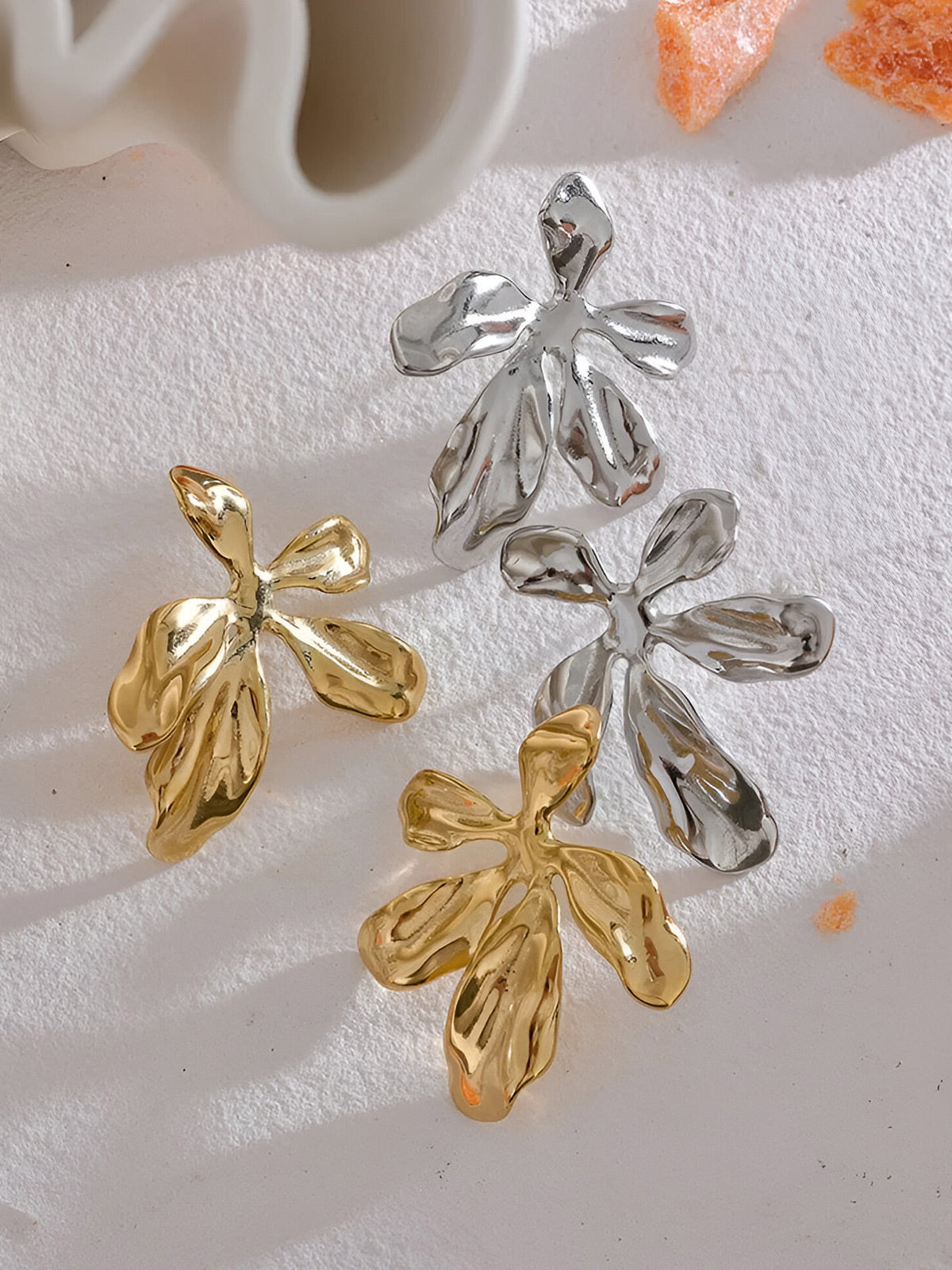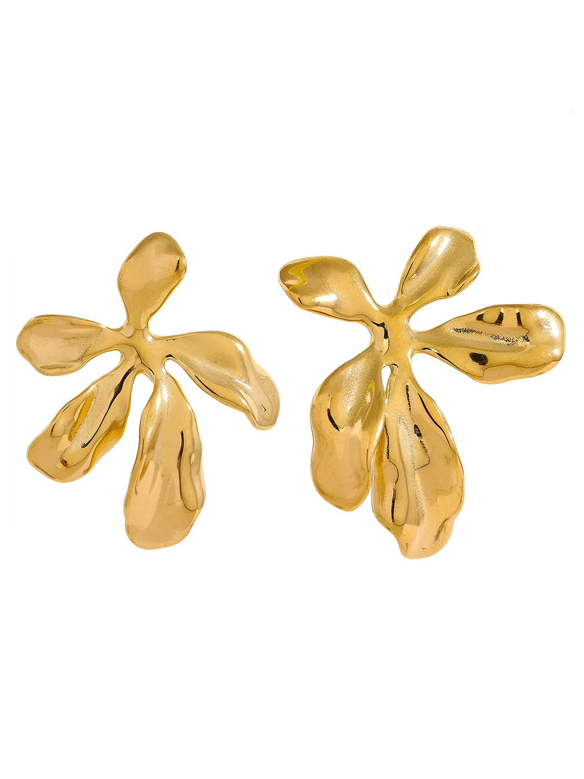 Elegant stainless steel flower stud earrings with 18K PVD plating. Waterproof and tarnish-resistant, these bold botanical studs work for everyday wear or special occasions. Comfortable and durable with a secure setting.