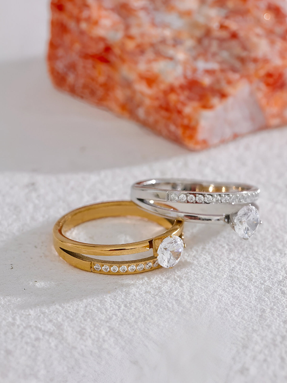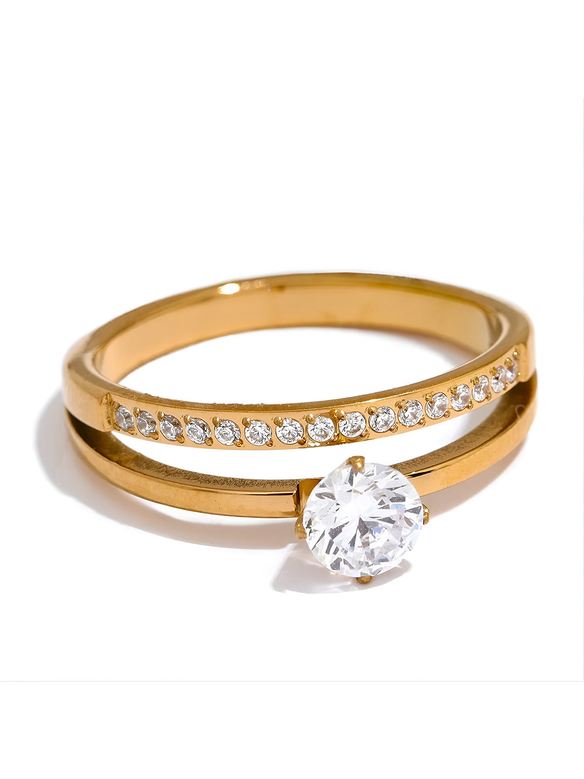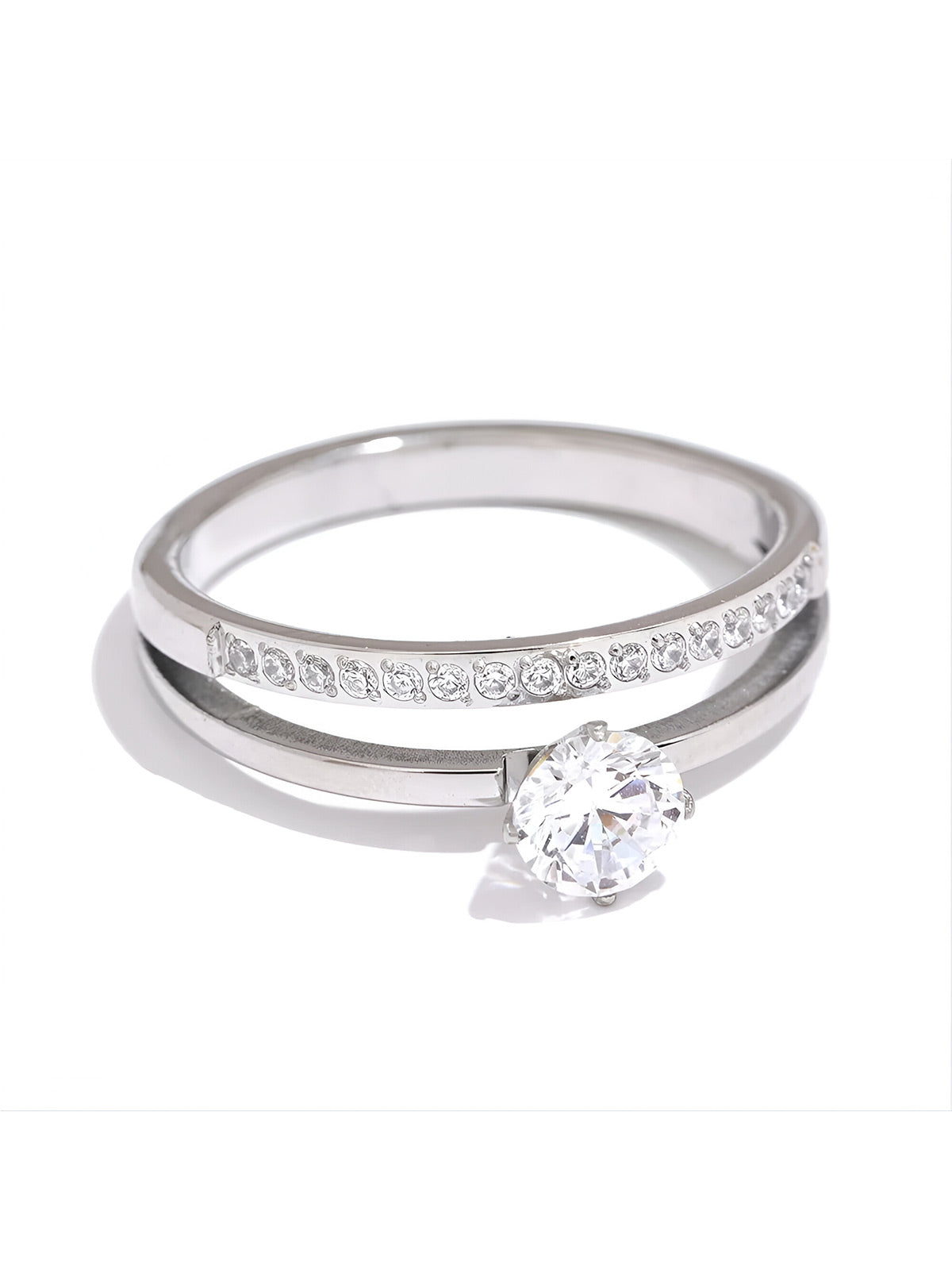 This elegant double-layer stainless steel ring features sparkling cubic zirconia stones and a timeless design. Hypoallergenic and durable, it's perfect for daily wear or as a meaningful gift. Classic beauty meets quality craftsmanship in one versatile piece.