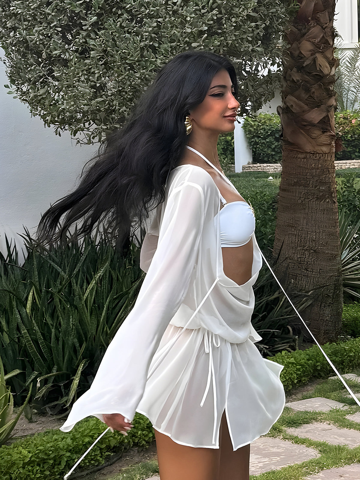 Elevate your beach style with this expertly crafted 3-piece swimsuit set, featuring a bandeau bikini, hollow-out details, and a coordinating cover-up. Designed to balance comfort and fashion, this swimwear offers a flattering fit that enhances your silhouette while providing versatile options for sun or shade. The bodysuit style adds support and modern elegance, perfect for confident, stylish women seeking both function and flair at the beach or poolside.