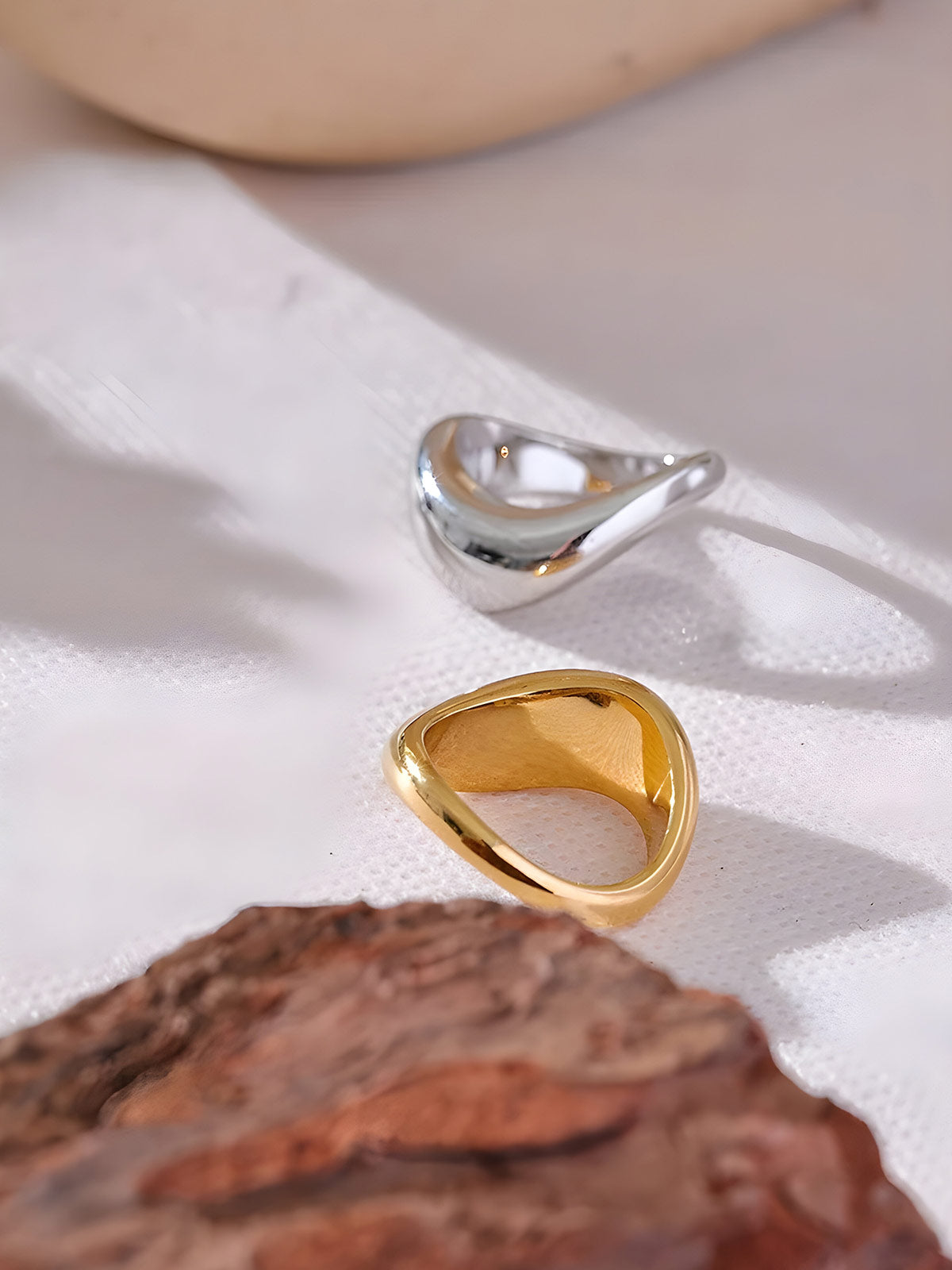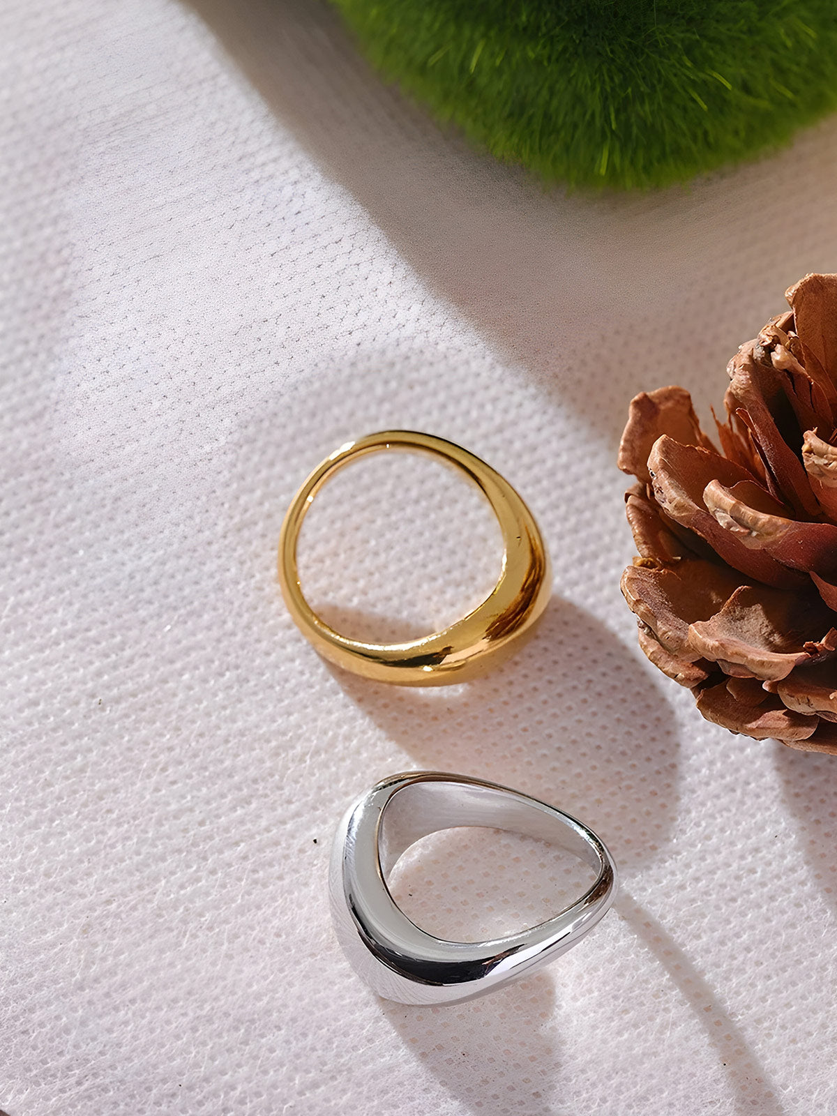 This Yhpup minimalist finger ring features a smooth stainless steel design with a geometric shape, offering a modern and distinctive look. Its 18K PVD plating ensures durability and resistance to water, making it suitable for everyday wear. Crafted for those who appreciate subtle yet elegant jewelry, this ring combines style with lasting quality.