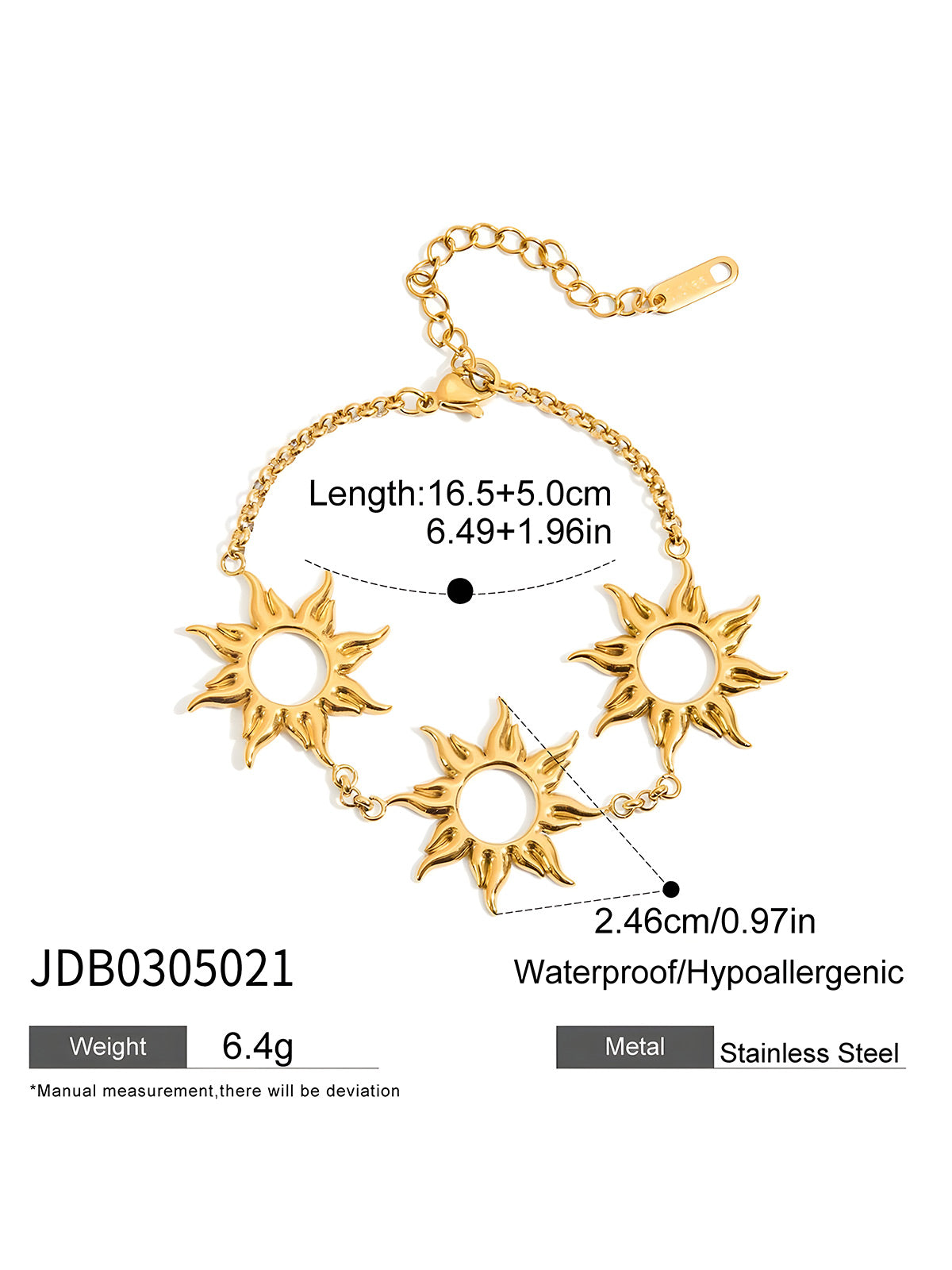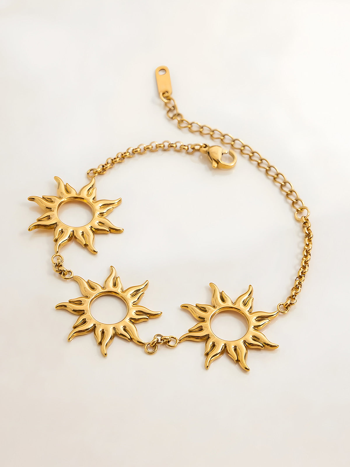 This Zora women's bracelet combines retro charm with modern durability. Crafted from 18K gold-plated stainless steel, it offers lasting shine and resistance to water, making it ideal for everyday wear. The hollow sun design adds a unique, stylish touch that complements various outfits while maintaining comfort and resilience. Perfect for those seeking elegant yet practical jewelry.