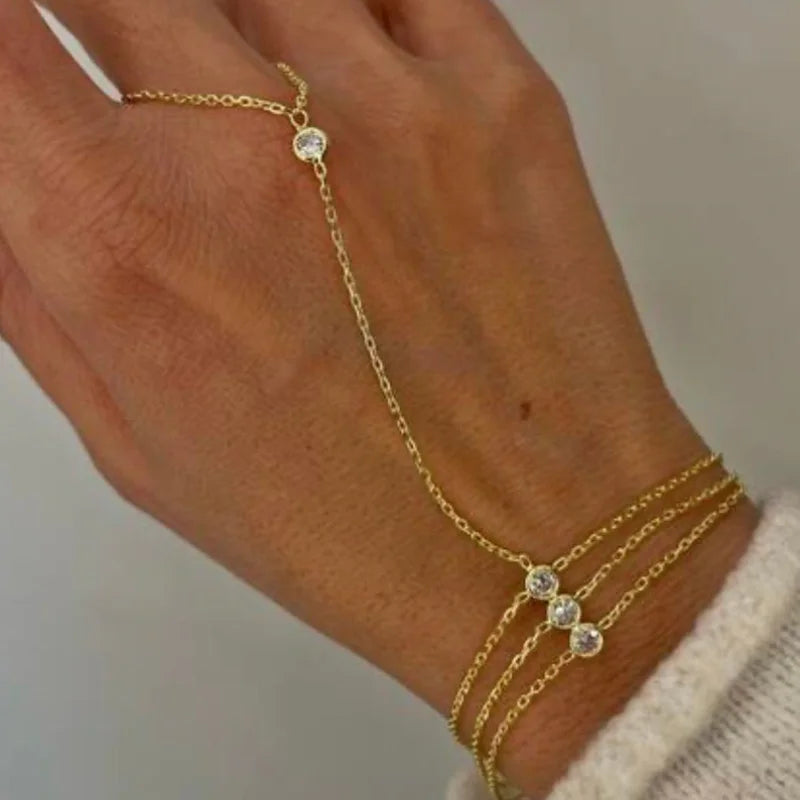 A durable stainless steel hand chain designed for everyday wear, featuring waterproof, tarnish-resistant construction and a sleek lustrous finish. This elegant finger bracelet blends bezel detailing with refined craftsmanship, making it suitable for both casual and formal looks. Comfortable, long-lasting, and timeless, it’s a perfect Mother’s Day gift and a reliable investment in quality jewelry.