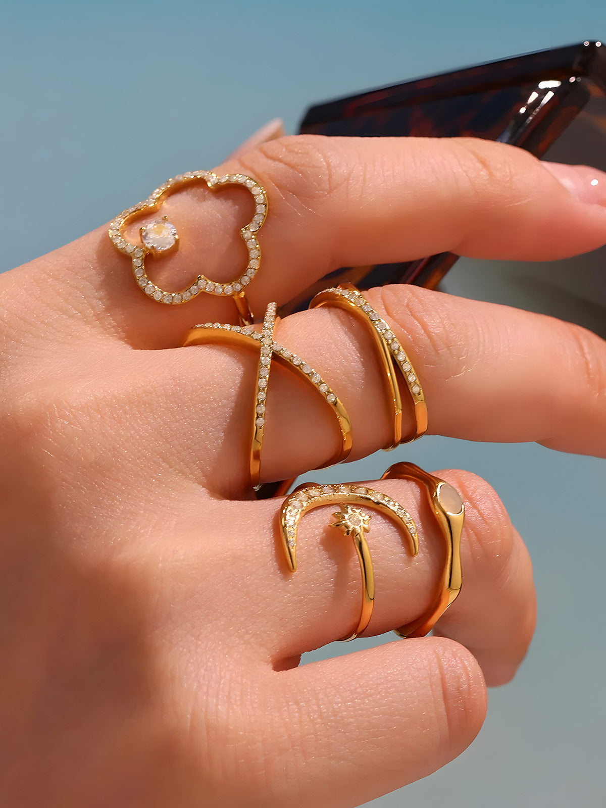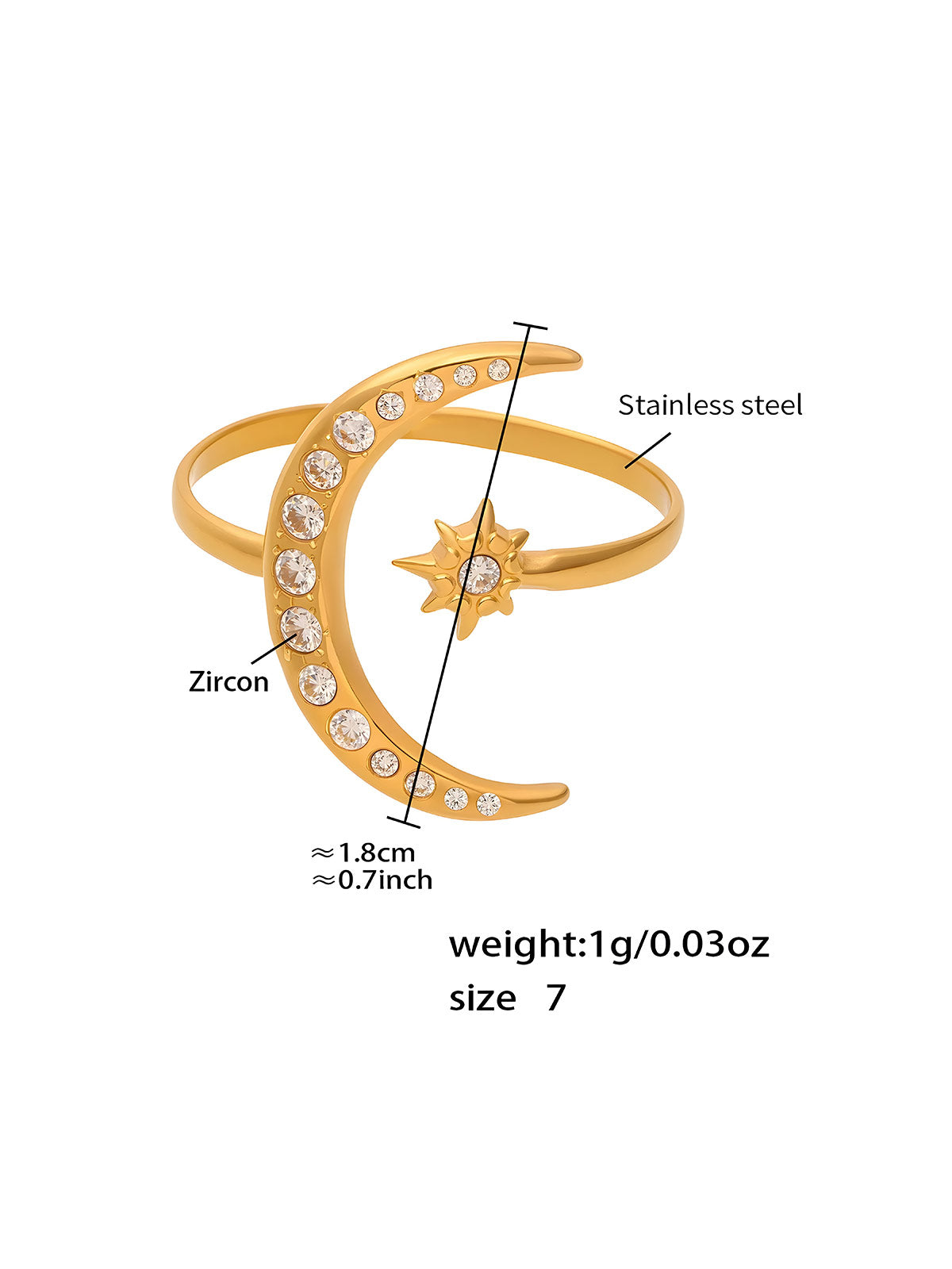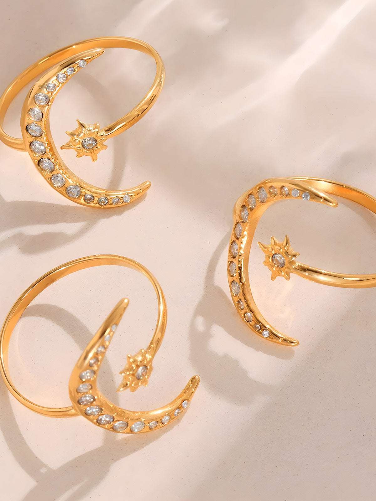 Elevate your elegance with the Nivora Delicate Shiny Zircon Star Moon Rings, crafted from durable stainless steel for lasting wear. These thin, intricately designed rings feature sparkling zircon accents shaped as stars and moons, perfect for adding a subtle charm to your index finger. Ideal for weddings or as thoughtful gifts, they combine refined craftsmanship with celestial beauty to complement any style with expert finesse.